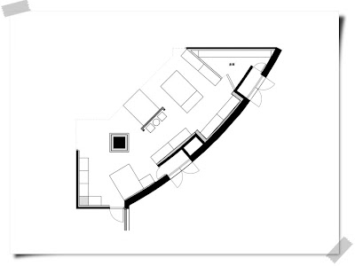 下圖是本次完稿平面圖,看似簡單的平面,光放樣,就讓我們費盡心思,整個平面中有許多的轉角。第一次由百貨公司主管費心去測量,放樣後的圖說「好像另一側入□距離沒這麼寬?」呃~,再請同行的去測量,第二次「好像左下角傾斜的角度不大一樣」,呃~,我們自己前進一趟好了。到了櫃位上,才完完整整的傻眼,原來這次測量的大魔王是左下角的傾斜角,在二丹尼斯百貨樓的咖啡餐廳與櫃位間跑來跑去,一邊在NOTEBOOK 上作業才將平面範圍確認。最後將平面配置確認完成。幸好,有到現場一趟。